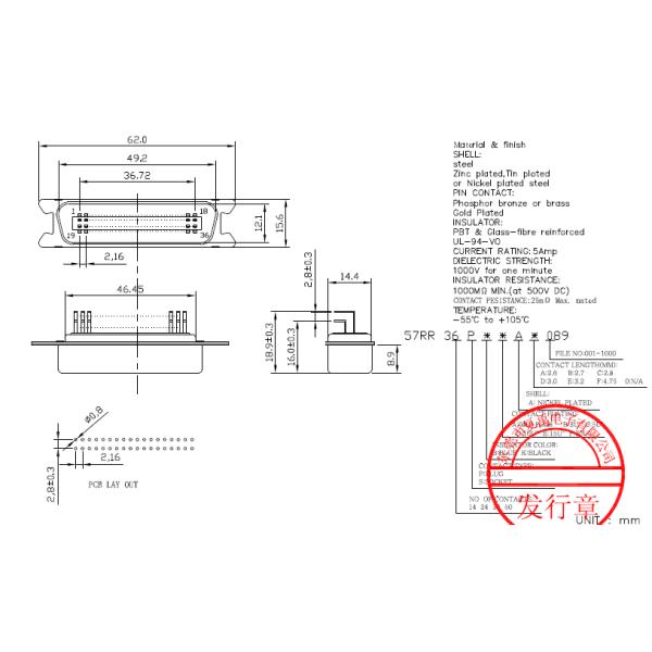 Right Angle 36 Pin Centronic R/A Male Printer PCB Mount Connector MD Type Certified UL Images |